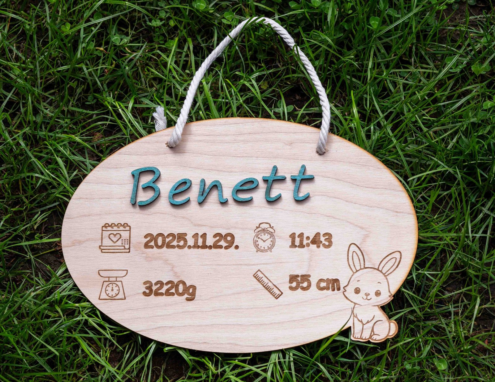 Ez a születési tábla ideális ajándék újdonsült szülőknek, keresztelőre vagy babalátogatóba. Egy olyan személyes meglepetés, amely minden otthonban különleges helyet érdemel. Akasztható a falra, az ajtóra vagy akár a babaszoba polcára is, hogy mindig emlékeztessen arra a csodálatos napra, amikor a család egy új taggal bővült.