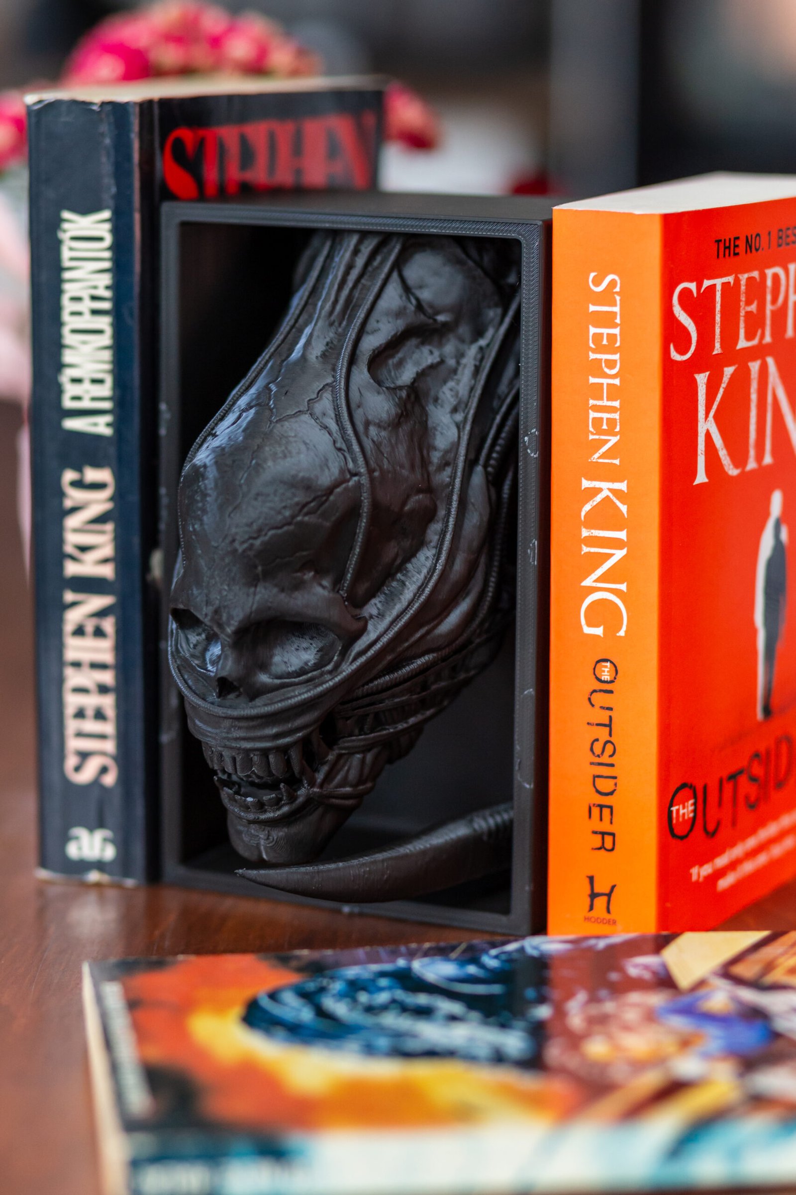 Egy ismeretlen lény kúszik el? a könyvek közül… A legendás Alien filmek ikonikus szörnye most a könyvespolcod árnyékai között lapul. Ez a 3D nyomtatott booknook borzongató részletességgel kelti életre a xenomorph fenyeget? jelenlétét.