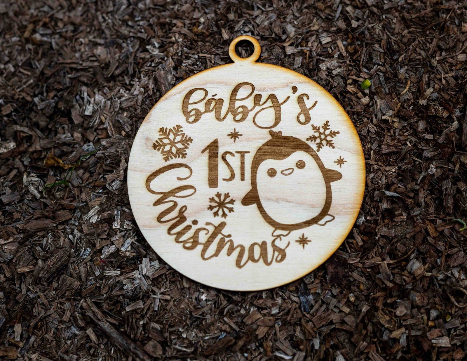 Különleges, 4 mm vastag nyír rétegelt lemezből készült karácsonyfadísz, amely tökéletes kiegészítője az ünnepi dekorációnak. Az Első karácsonyom karácsonyfadísz Pingvines – lézervágott és gravírozott 8 cm átmérőjű díszek modern lézervágással és precíz gravírozással készülnek, így minden darab részletgazdag és természetes hatású.