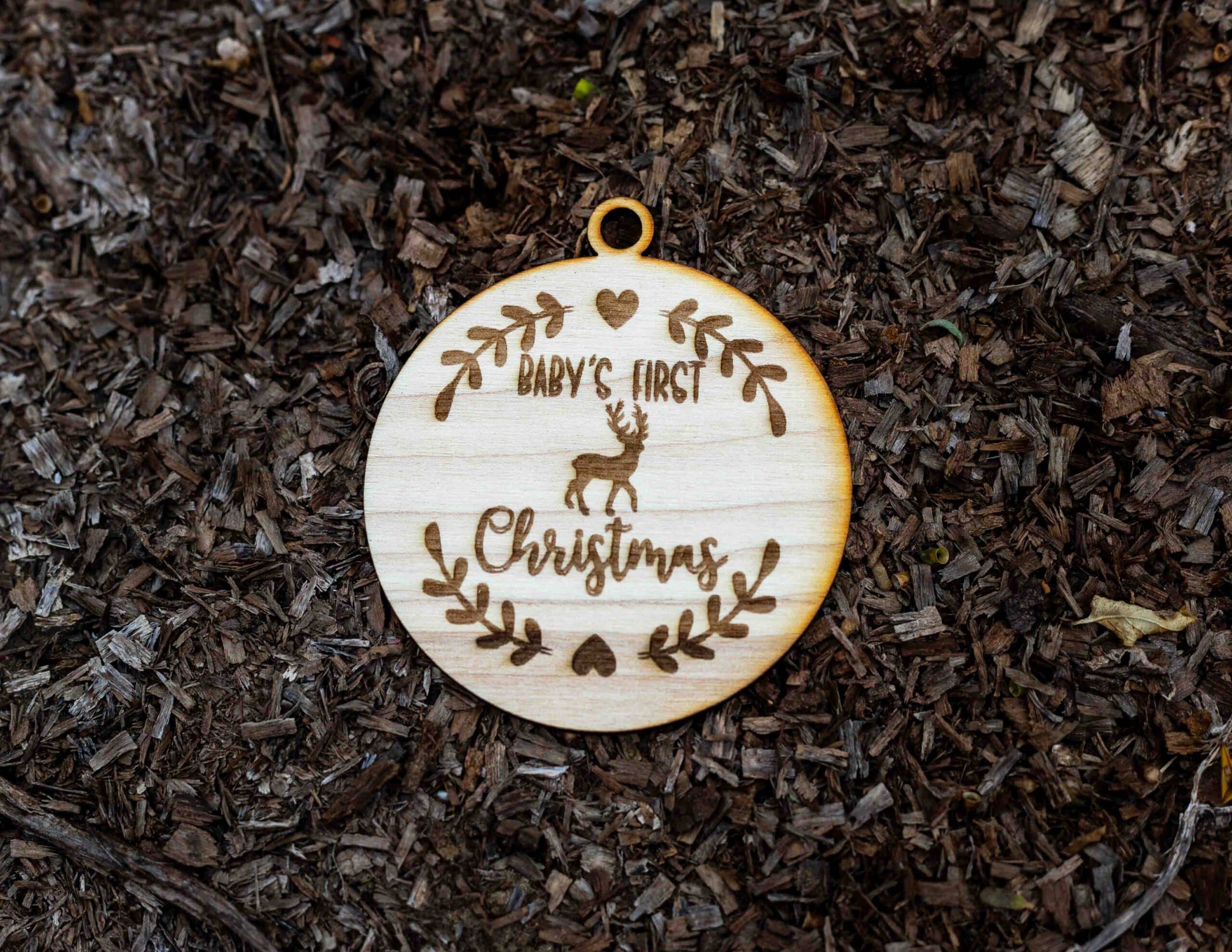 Különleges, 4 mm vastag nyír rétegelt lemezből készült karácsonyfadísz, amely tökéletes kiegészítője az ünnepi dekorációnak. Az Első karácsonyom karácsonyfadísz Szarvas mintás– lézervágott és gravírozott 8 cm átmérőjű díszek modern lézervágással és precíz gravírozással készülnek, így minden darab részletgazdag és természetes hatású.