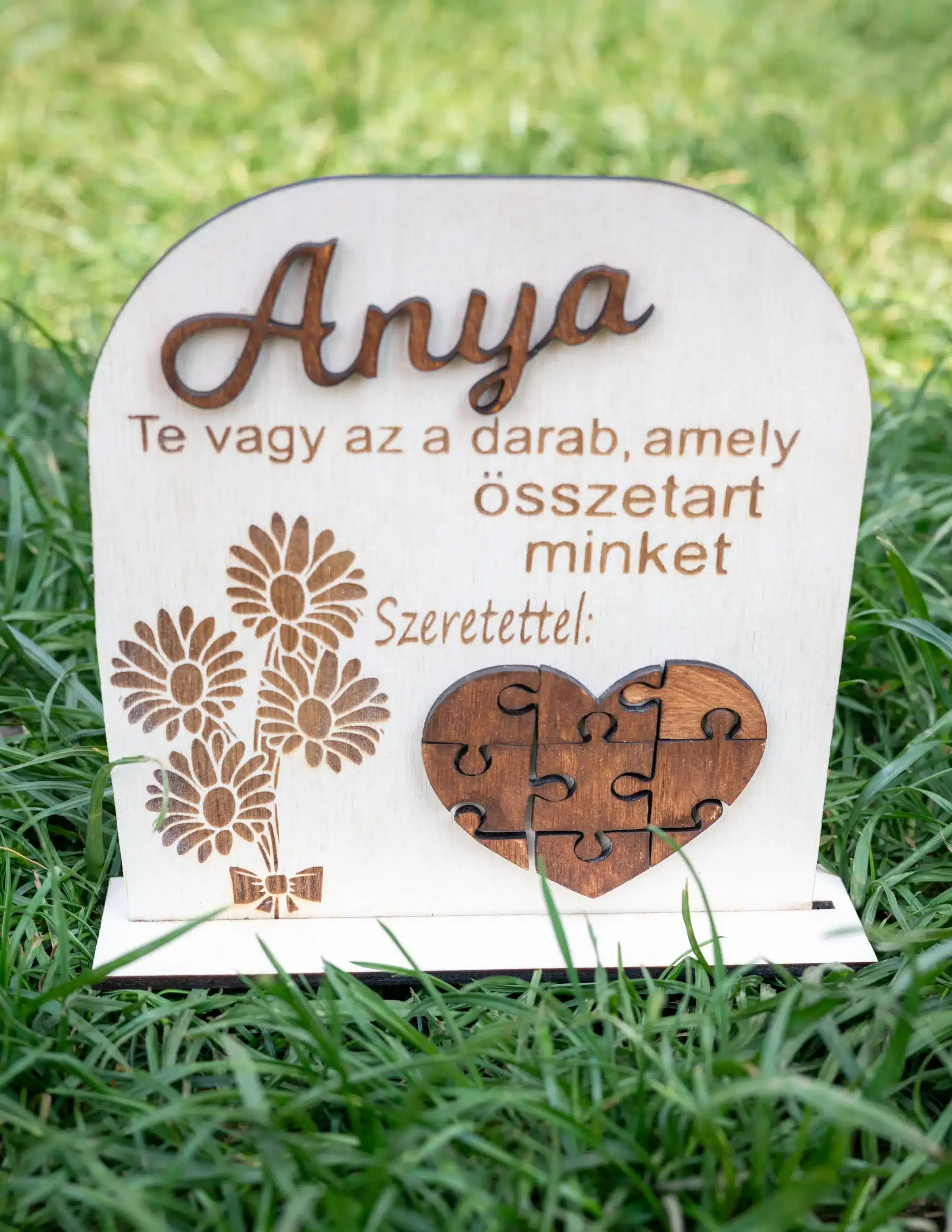 „Anya, a mi összetartó kapcsunk” – Fa Emléktábla Puzzle Szívvel