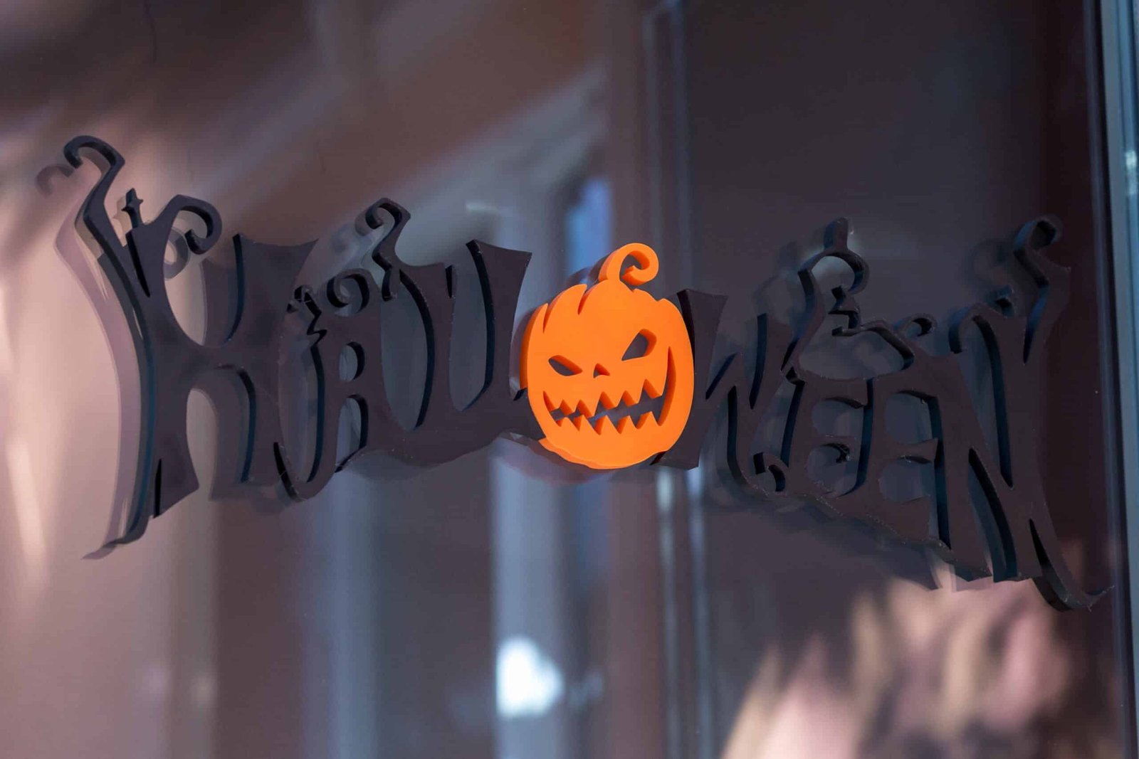 Halloween ajtódísz 3D nyomtatott dekoráció. Ünnepi hangulatú ajtó- vagy faldekoráció Halloweenre. Tartós PLA anyagból.