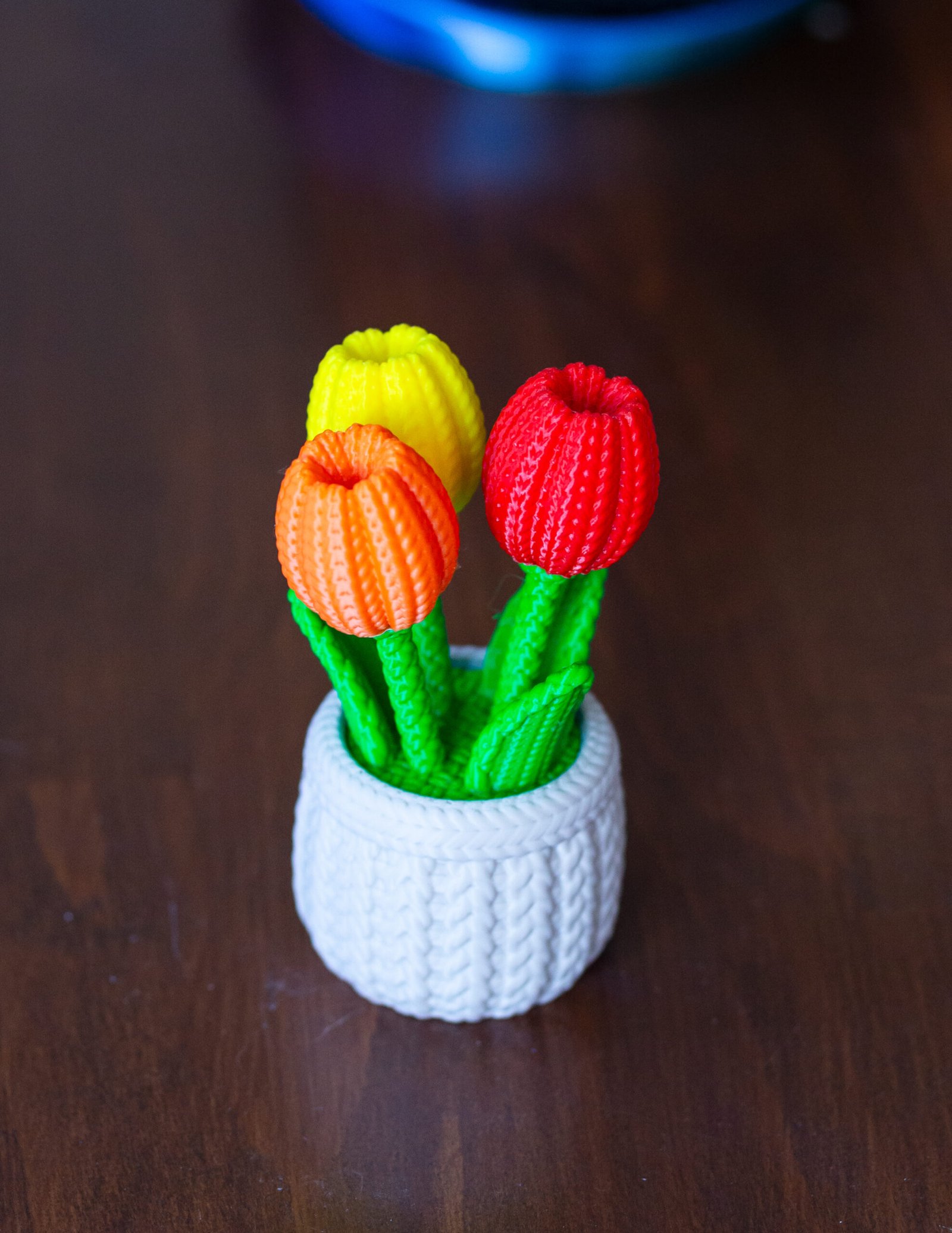 Dobd fel az otthonod vagy munkahelyed ezekkel a vidám, kézzel összeszerelt, 3D nyomtatott virágkompozíciókkal! Minden egyes virág és cserép egyedileg készül PLA anyagból – környezetbarát, mégis tartós megoldás a virágdekorációra!